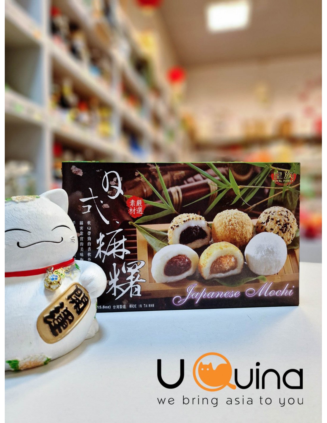 Mochi is a traditional Japanese dessert made of sticky rice, most often stuffed with red bean paste, sesame paste, or green tea.