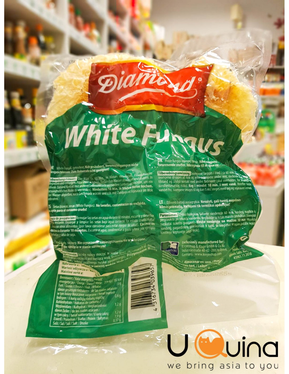 Podobne teksturą do grzybów mun, chińskie białe grzyby nazywane również srebrnym uchem, lub drzewną meduzą. Rekomendowane do lekko słodkich potraw, głównie do zup, napojów, legumin i deserów. Urozmaicają potrawę wyglądem, jak i cechami organoleptycznymi. Przygotowanie: Białe grzyby należy opłukać w chłodnej wodzie, a następnie moczyć przez 1 godzinę pod przykryciem w lodówce. Po tym czasie grzyby należy ponownie opłukać, po czym dusić, lub smażyć w potrawie przez około 10 min.